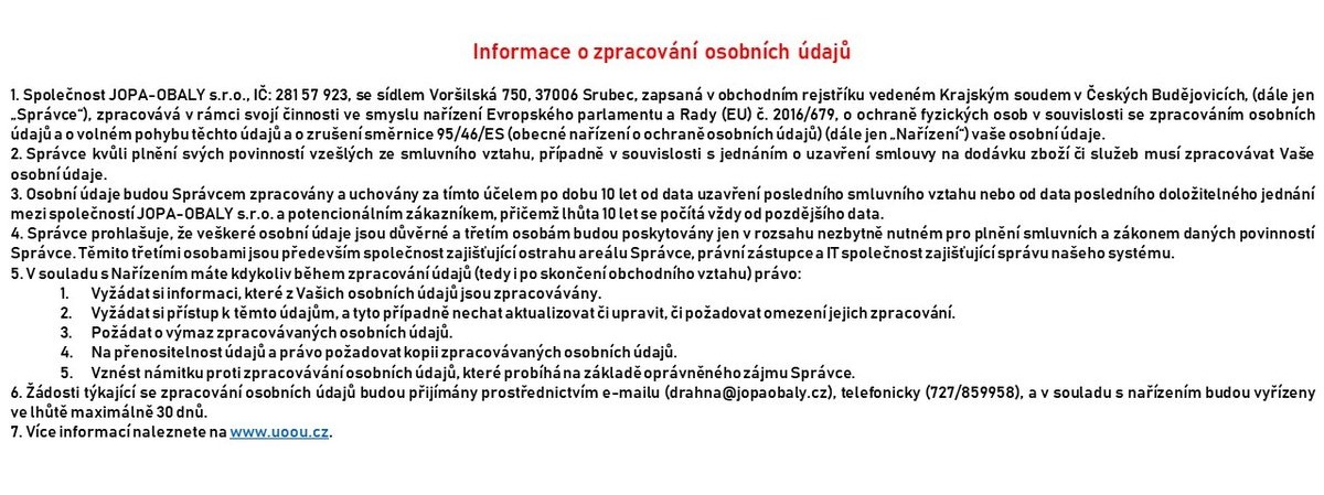 Pokud bylo zboží objednáno soukromou osobou (nikoliv tedy na IČ), máte podle odstavce 6 novely občanského zákoníku č.367/2000 možnost odstoupit od smlouvy do 14-ti dnů od převzetí zboží. Pokud se tak rozhodnete, zašlete na naši adresu doporučeně písemnou žádost s uvedením čísla objednávky, popř. čísla daňového dokladu a čísla účtu.